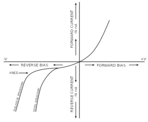 Voltampérová charakteristika Zenerovy diody. Zdroj: