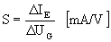 $$\textrm{S = }\frac{\Delta \textrm{I}_\textrm{E}}{\Delta \textrm{U}_\textrm{G}} \ \ \ \textrm{[mA/V]}$$