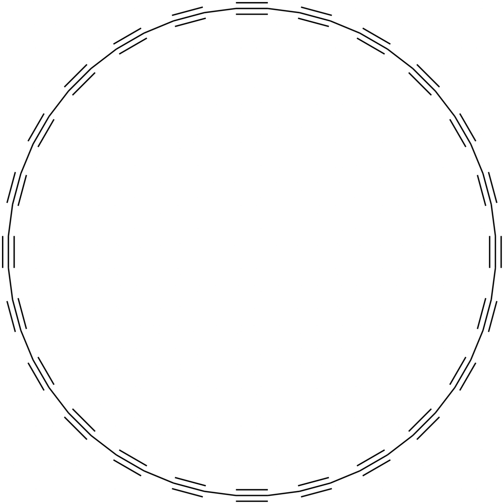 Allotropických modifikací uhlíku známe už opravdu velké množství, ale zatím tam chyběly větší cyklické molekuly. V nové studii je popsána syntéza cyklu C48, který je stabilizován třemi makrocykly, se kterými vytváří katenan.