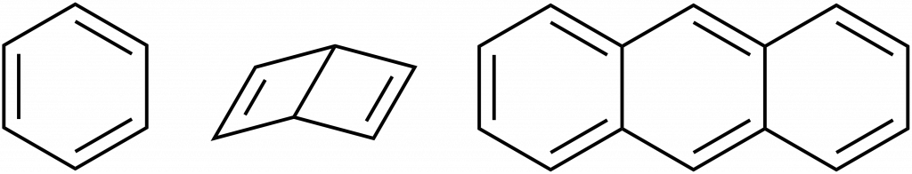 Anthracen – aromatická molekula skládající se ze tři kondenzovaných benzenových kruhů v přímém uspořádání.