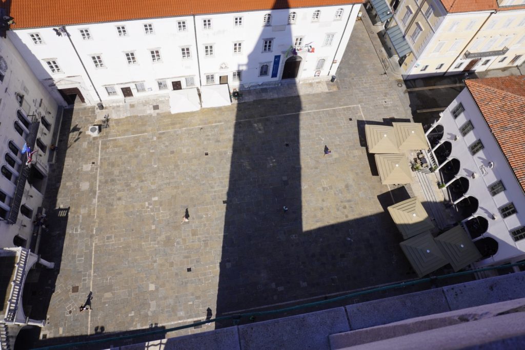 Od přístavu jsme vyrazili do centra města, na náměstí Titov trg, které bylo pojmenováno po maršálu Titovi. Je zde možnost vystoupat na vyhlídku na zvonici katedrály Nanebevzetí Panny Marie, z které je pěkný pohled na celé město a okolí.