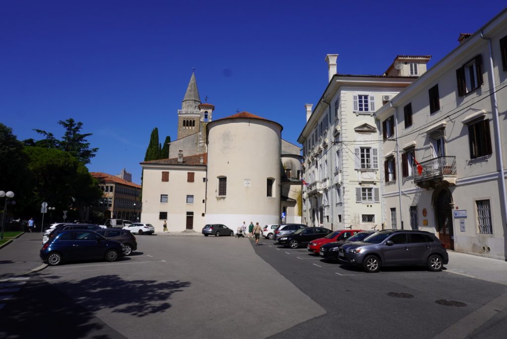 Vzhledem ke vzdálenosti od Strunjanu, jsme museli do Koperu jet autem. Zaparkovali jsme na placeném parkovišti u tržnice. Parkoviště je sice obrovské, ale po deváté hodině už bylo dost plné.