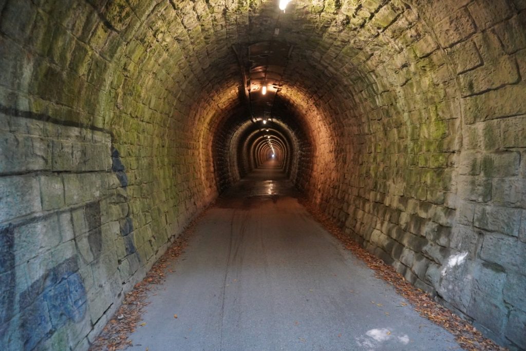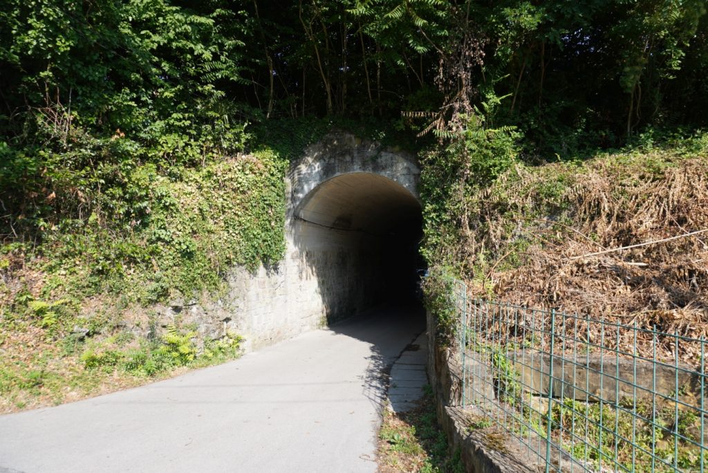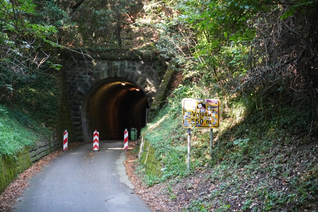Vyrazili jsme ráno od hotelu, po projítí Strunjanu jsme se vydali nahoru, až k tunelu Valeta, původně železničnímu tunelu, který dnes slouží pro pěší a cyklisty.