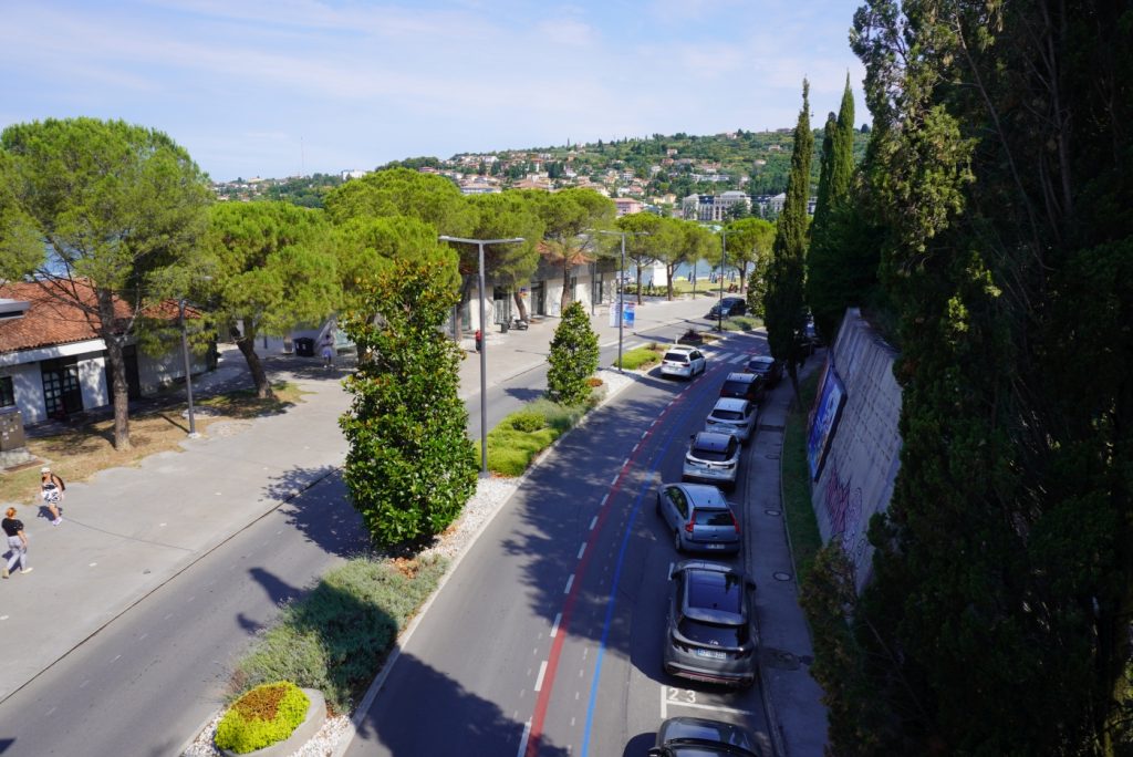 Do Portorože jsme se během dovolené vydali dvakrát, podruhé už autem. Parkovali jsme na parkovišti u obchodu Mercator.
