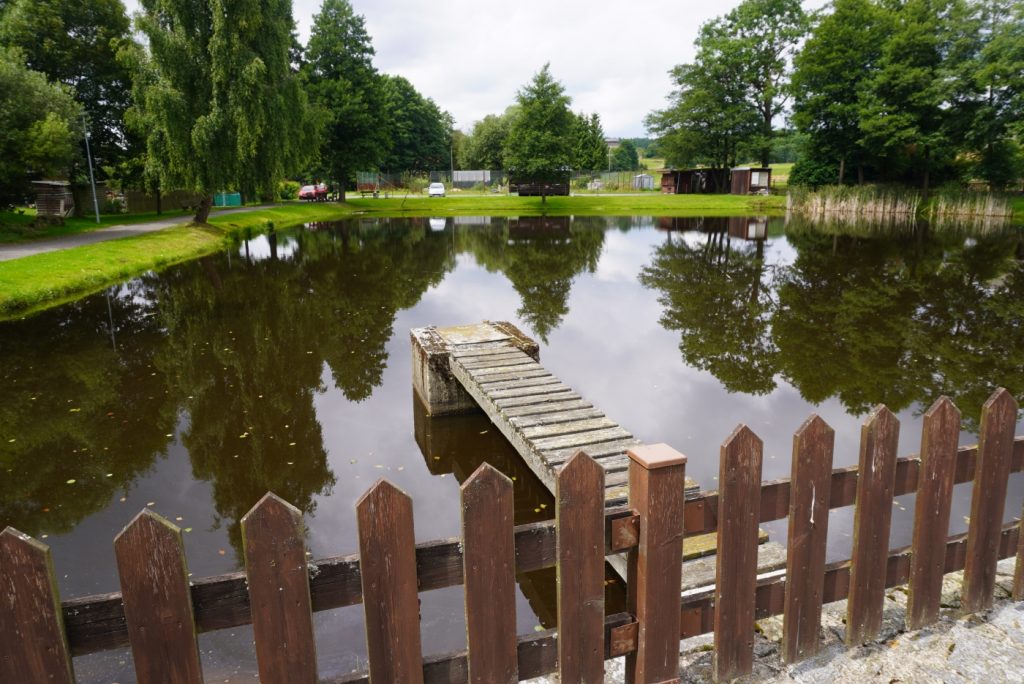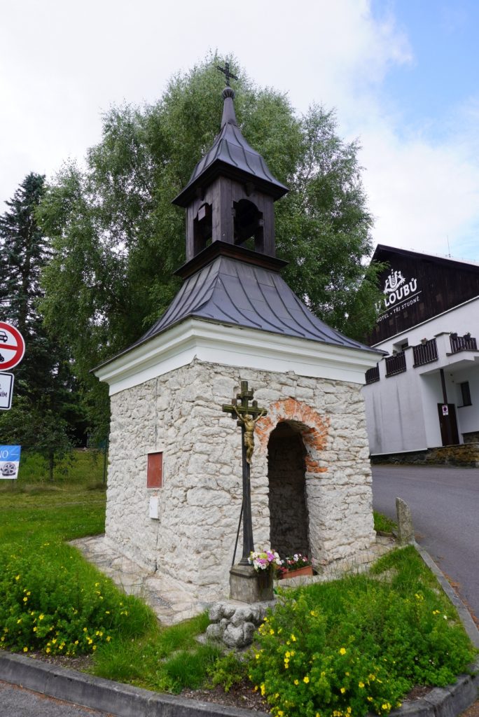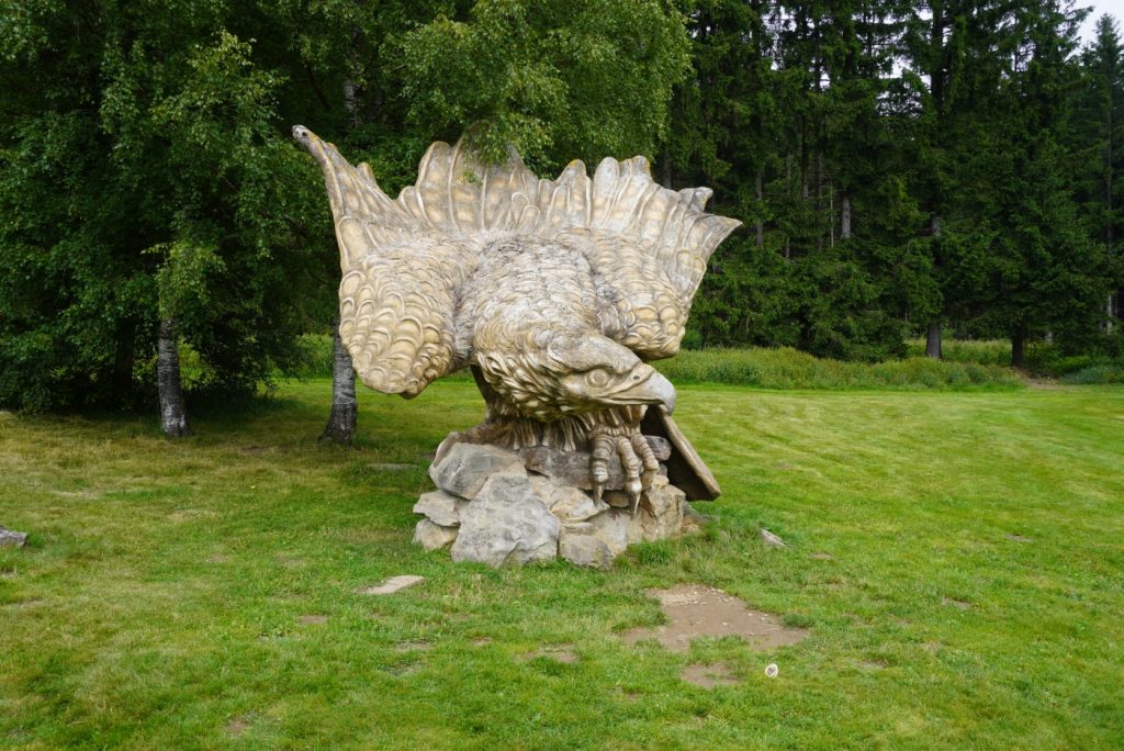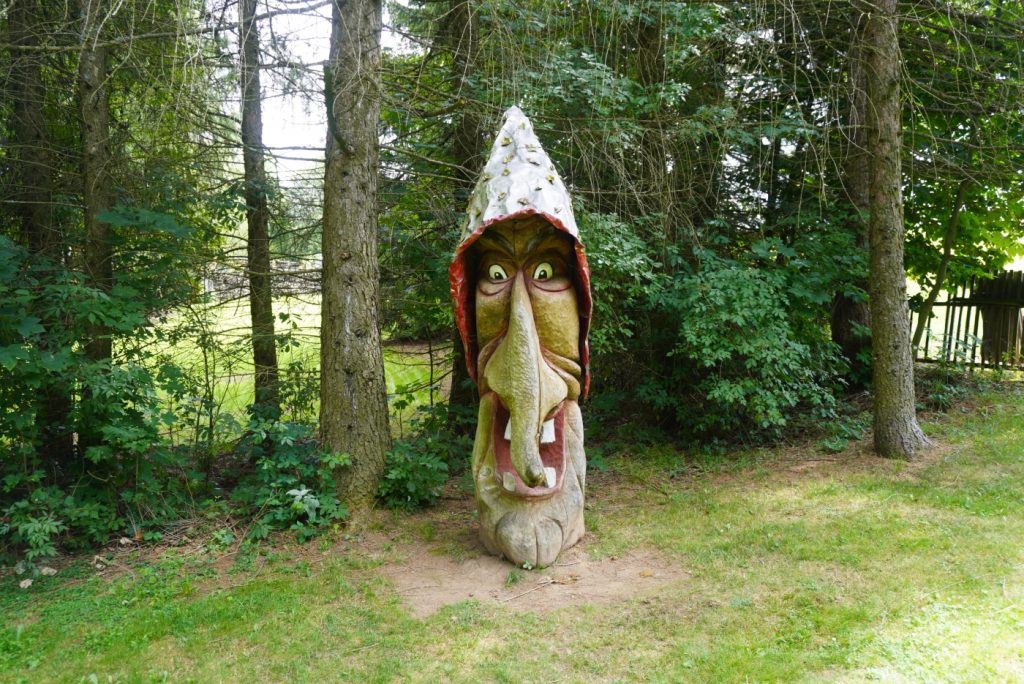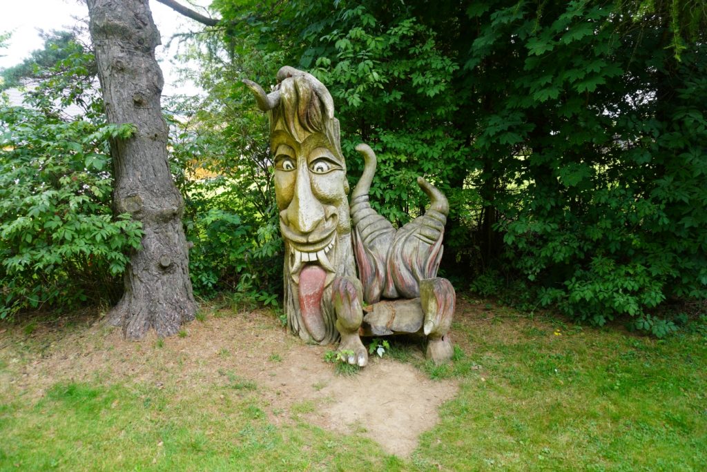 Z parkoviště jsme se vydali k soše Hejkala Pepina, ta pochází z roku 2012 a je umístěna v areálu penzionu Zátiší, bohužel se až k ní nedá dostat, ale je viditelná od plotu.