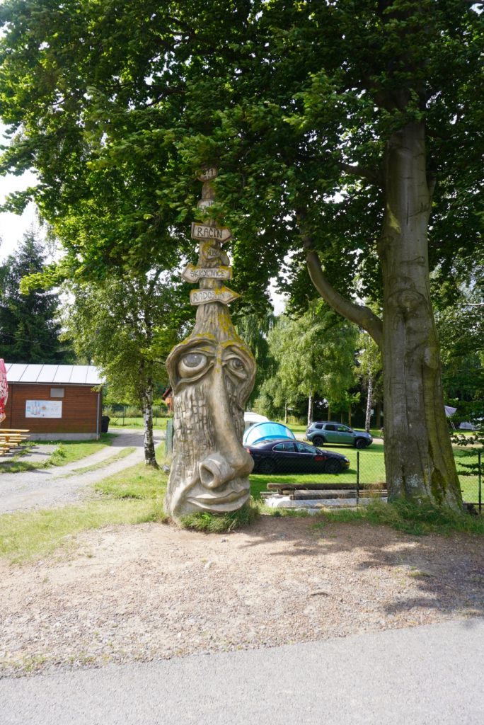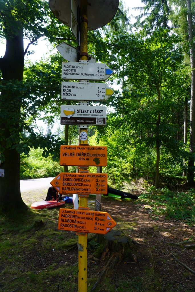 Zaparkovali jsme u Velkého Dářka, kousek od rozcestníku Dařbucha, sochy Michala Olšiaka. Odsud jsme vyrazili po žluté značce do Račína.
